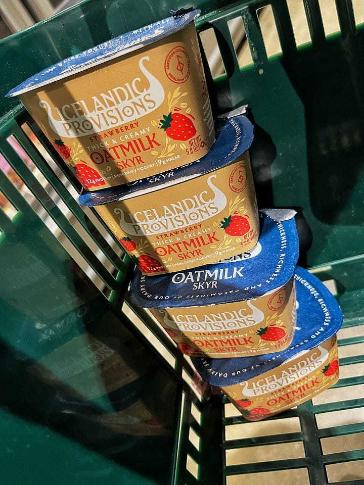 D | Delight — For my ATX babes, HEB is running a sale on my fave oatmilk yogurt—Icelandic Provisions! Not sponsored (but I wish!)—this is my fave brand, especially while in a cut & the probiotics should be helpful for my tummy! This yogurt is not too sweet, pairs well with granola or fruit, and the strawberry flavor is the best, imo. Not all HEB’s carry this brand of oatmilk yogurt, though, so check before you go.